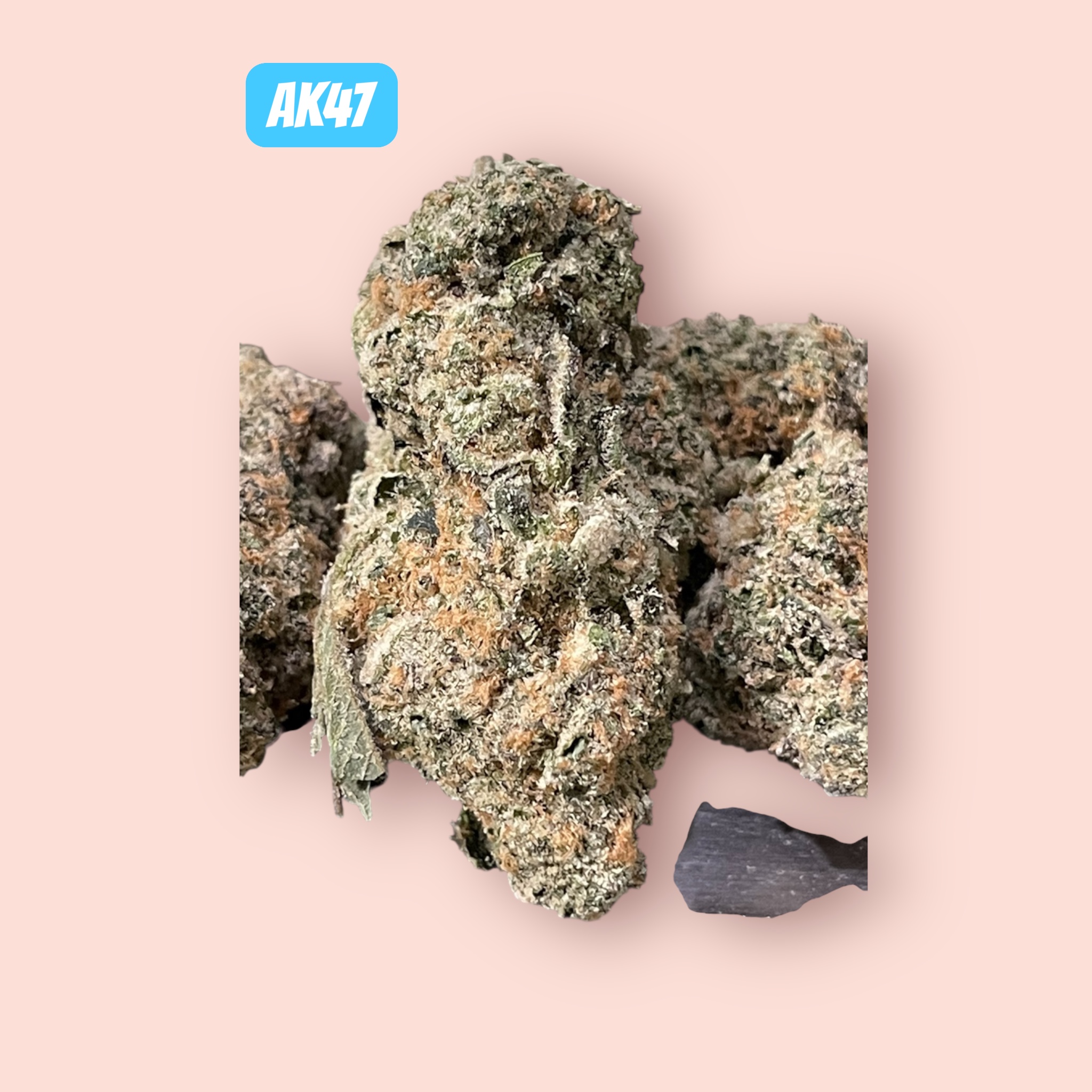 Description: AK-47 Strain, also known as “AK,” is a sativa marijuana strain with a lineage that combines Colombian, Mexican, Thai, and Afghani varieties. Its flavor profile is a complex blend of sour and earthy notes, accompanied by sweet and floral undertones that come alive upon tasting. Despite its intense name, AK-47 may deliver a relaxing and mellow experience, including a steady and long-lasting cerebral buzz, keeping you mentally alert and engaged in creative or social activities.