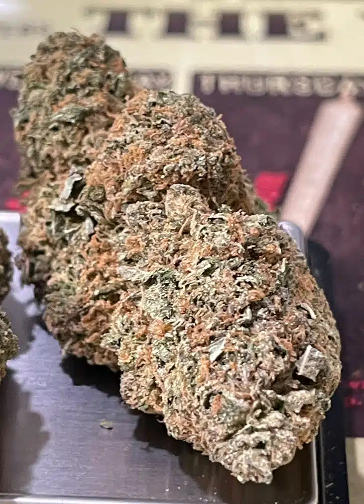 Birthday Cake is an indica dominant strain that is created through a cross of the insanely delicious Girl Scout Cookies X Cherry Pie strains. Like its name suggests, this bud has a crazy tasty flavor of fruity vanilla skunk with a hint of sweet nuttiness upon exhale. The smell is a little mellower, with a sweet skunky pungency that has a slightly vanilla overtone. These buds have a super frosty appearance, much like a birthday cake, with large and dense oversized heart-shaped light forest green nugs that have sparse fiery orange hairs. Although this bud is best loved for its flavor, the effects are just as enticing. The high starts with a happy and euphoric uplifted effect that launches your mood into the sky with a complete wiping of any mental pain or racing thoughts. As your mind soars with giddiness, your body will fall into a deeply relaxing and sedative state that immediately locks you to anything you’re sitting on. You’ll fall victim to a deeply sedated state that will eventually lull you into a deep and peaceful pain-free sleep. These effects and its powerful THC level of up to 24% make Birthday Cake Kush perfect for treating chronic pain, insomnia, headaches or migraines, muscle spasms, and inflammation.