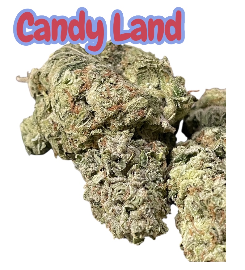 Candyland, also known as “Kandyland,” is a sativa marijuana strain bred from Granddaddy Purple and Bay Platinum Cookies. Golden hairs weave through Candyland’s thick coat of sugar-like trichomes and highlight the compact, camouflage-colored buds. Patients turn to Candyland when trying to moderate pain, muscle tension, and sour moods. Candyland offers uplifting and stimulating effects, making it a perfect strain for social gatherings or creative pastimes.