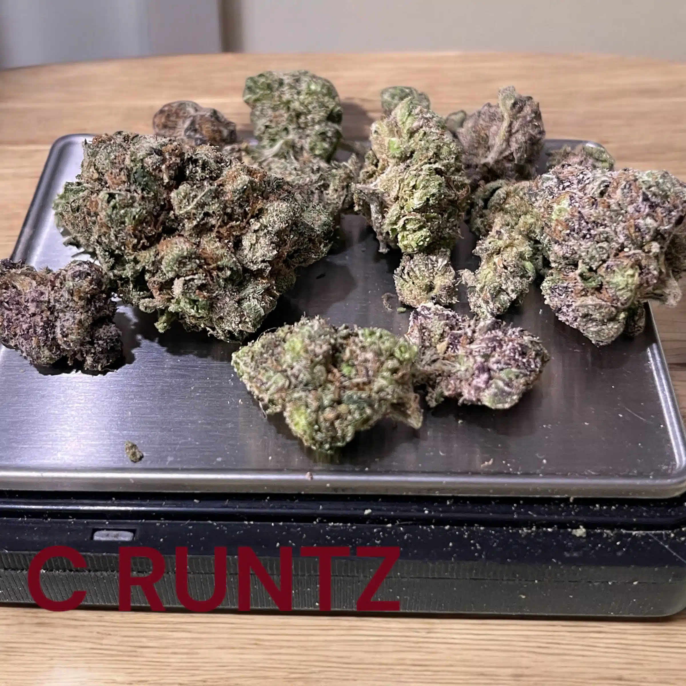 Coochie Runtz is an evenly balanced hybrid strain (50% indica/50% sativa) created through crossing the potent Runtz X another unknown hybrid strain. If you’re wondering where this bud gets its name from, just take a toke and feel the effects and you’ll see why. Not only does Coochie Runtz pack a super delicious flavor, but also it brings in tingly, arousing effects that will totally have you ready for action. The high hits you between the eyes mere moments after your final exhale, filling your mind with a slightly tingly and lifted sense of happiness and mental energy. You’ll feel lifted and euphoric but not able to focus on much of anything, falling in and out of fits of the giggles as your mood soars higher and higher. A tingly body high comes next, slipping into your limbs and leaving you feeling relaxed but super aroused. Combined with its super high 29-33% average THC level, these effects make Coochie Runtz a great choice for treating chronic stress or anxiety, bipolar depression, chronic fatigue, mood swings and chronic pain. This bud has a sweet and fruity grape gas flavor with a super sour and cheesy apricot aroma to go with it. Coochie Runtz buds have fluffy grape-shaped forest green nugs with purple u