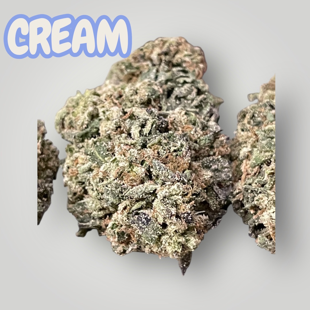 Cream is a hybrid weed strain made from a genetic cross between Wedding Cake and Gelato #33. Cream is 28% THC, making this strain an ideal choice for beginner cannabis consumers. Leafly customers tell us Cream effects include feeling focused, aroused, and tingly. Medical marijuana patients often choose Cream when dealing with symptoms associated with muscle spasms, pain, and depression. Bred by Cream Crop Co, Cream features flavors like flowery, berry, and pungent. The dominant terpene of this strain is Myrcene.