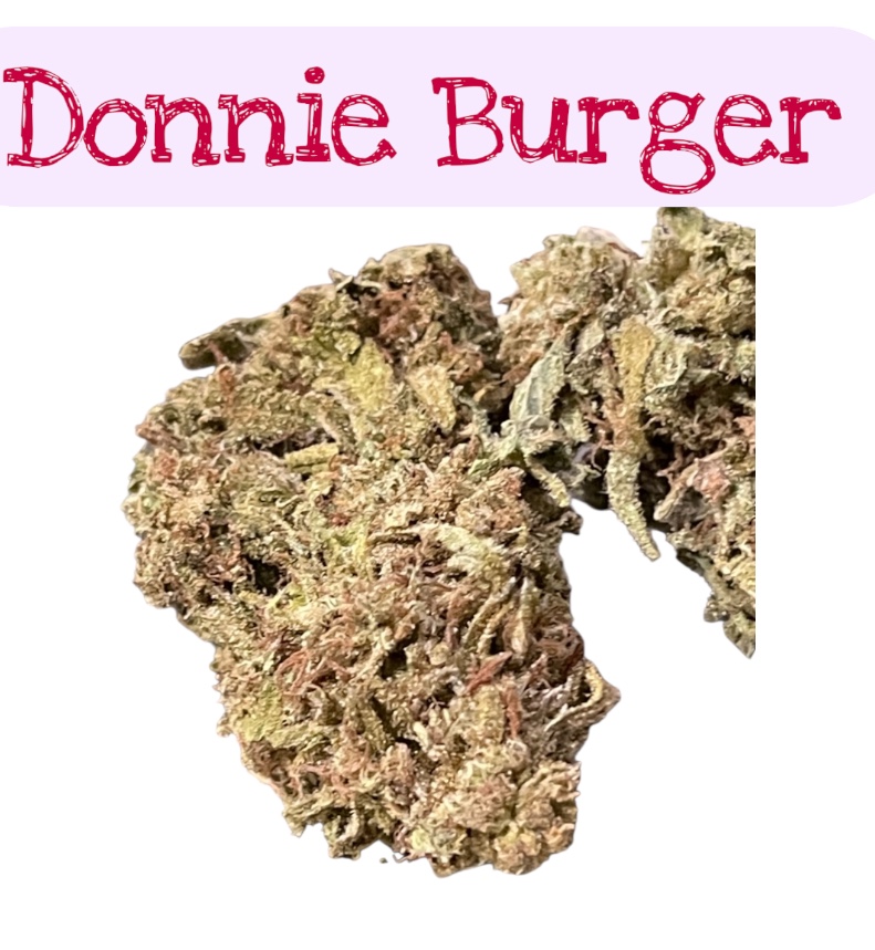 Donny Burger is an indica weed strain made by crossing GMO with Han-Solo Burger. The effects of this strain are more calming than energizing. Reviewers on Leafly say this strain makes them feel giggly, happy, and aroused. Donny Burger is 25%THC, making it extremely potent and best suited for cannabis consumers with a high THC tolerance. There is also a little CBG in this strain. The dominant terpene in Donny Burger is pinene, often associated with pine forest aromas. Medical marijuana patients say they often buy this strain during episodes of mild inflammation. The original breeder of Donny Burger is Skunk House Genetics.
