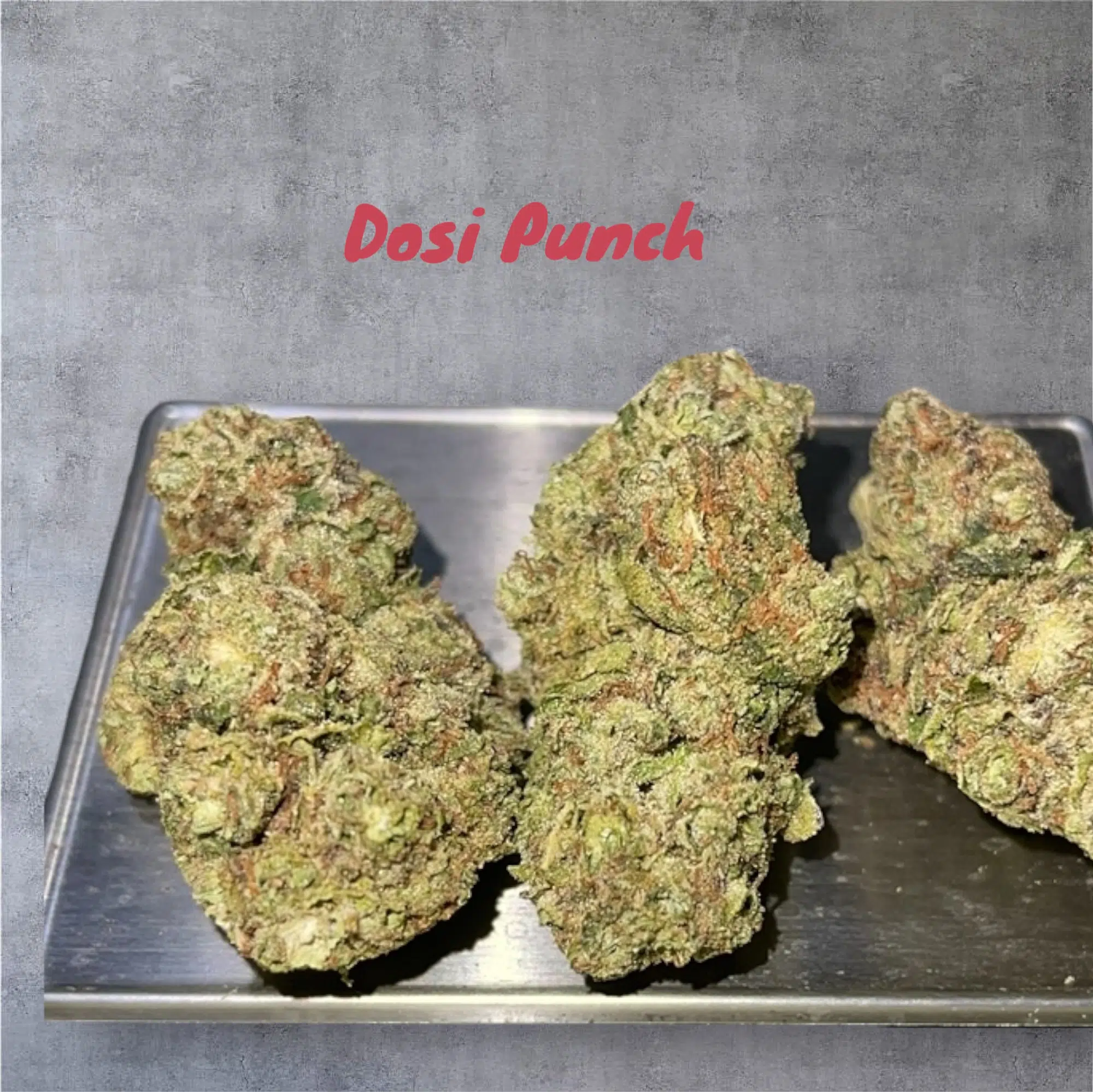 DosI Punch is an indica-dominant strain. It was made by crossing Dosidos and Purple Punch F2 and was bred by Symbiotic Genetics. The top reported aromas of Dosi Punch are sweet and fruity with a hint of gas. The strain is said to taste like grapes, nuts, and gas.
