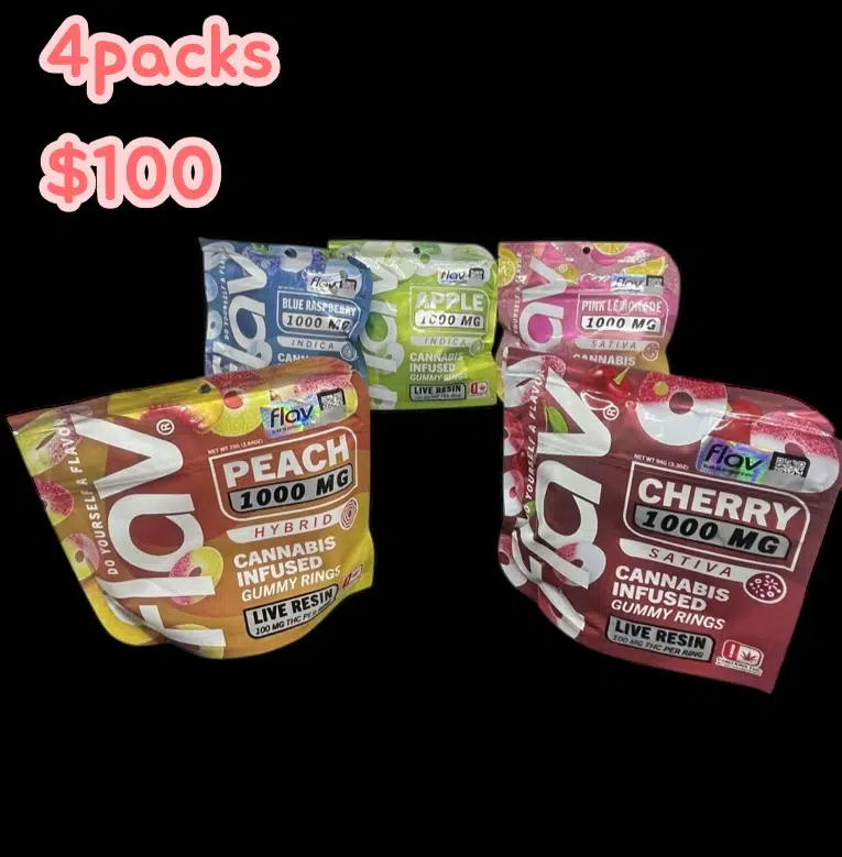 Flav Rings are the perfect fruity treat to jumpstart your cannabis experience. 10 serving size – 1000mg per piece
