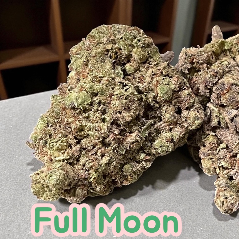 Full Moon is a sweet 100% Sativa cannabis strain. This beautiful lunar bud has impressive THC levels averaging between 18 to 25% or higher, making Full Moon some absolute fire. The buds are forest green in color housing gorgeous red and orange hairs and an abundance of sticky frosty trichomes. The flavor profile is sweet and spicy, with hints of pine and a peppery finish. Many consumers report this strain helping them control the symptoms of chronic pain, arthritis, stress, depression, anxiety, PTSD, nausea, loss of appetite, menstrual pains, and much more. The buzz is described as a very happy, creative, and social feeling one.