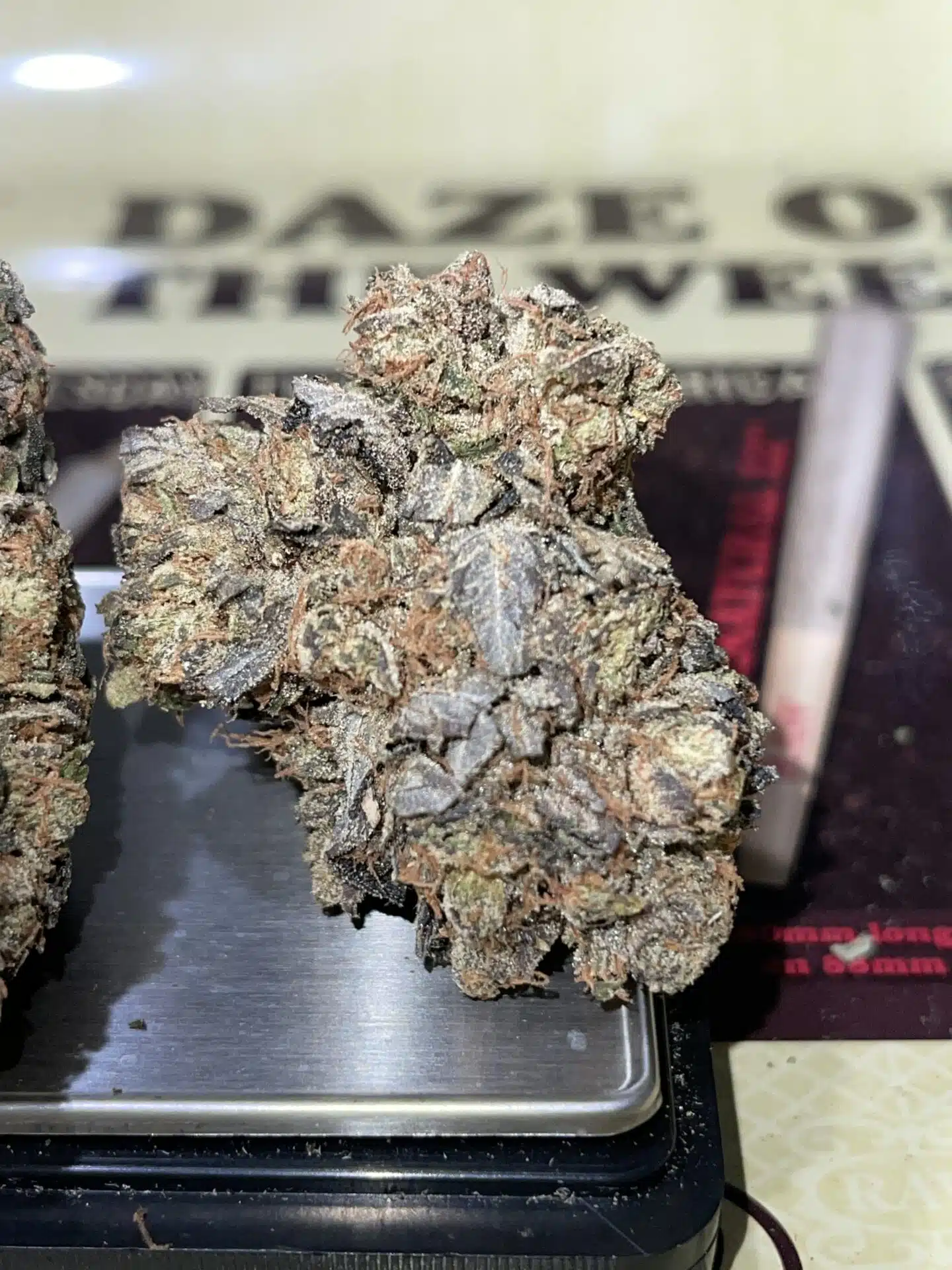Gas Leak is an indica dominant strain created through a cross of the classic Chem 91 X Chemdawg BX3 strains. If you light up this gorgeous girl in any room, you’ll totally find that it smells exactly like a gas leak, with a super pungent aroma of chemical skunk and heavy fuel. The flavor follows the same profile, although with a spicy herbal overtone that turns slightly pungent upon exhale. The Gas Leak high is just as delicious as the flavor, with full-bodied effects that stimulate the mind and relax the body. It starts with a cerebral effect, slamming into your brain with rushing lifted energy and a tingly warmth. This buzzing soon spreads its sedative tendrils throughout the rest of your body, dropping you into a heavy state of couch-lock and ease. This relaxing state does have the tendency to become sedative at times, leaving you dozing off and on before you finally fade away into a deep and peaceful sleep. With these effects and its high 26% average THC level, Gas Leak is said to be perfect for treating those suffering from conditions such as chronic stress, muscle spasms or cramps, chronic pain, depression and migraines or headaches. This bud has rounded grape-shaped forest green nugs with dark furry amber hairs and a coating of thick frosty matching crystal trichomes.