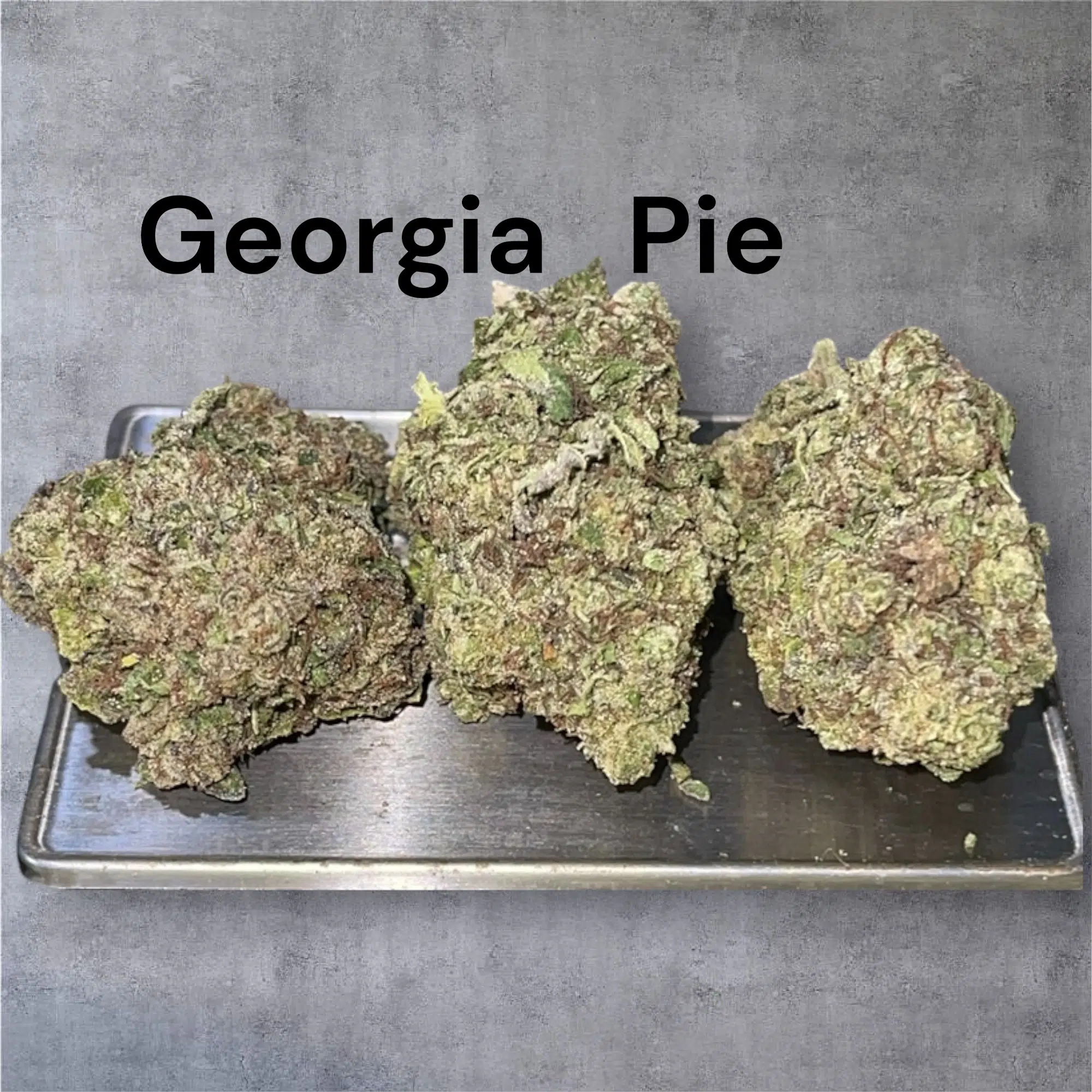 Georgia Pie is a potent hybrid marijuana strain bred by Seed Junkie Genetics. This strain is known for having a delicious aroma that smells and tastes just like fresh peach cobbler. Smoking Georgia Pie will immerse you with an intense body and head high. Because of its potency, Georgia Pie is best reserved for those who have a high THC tolerance. Medical marijuana patients choose this strain because of its ability to relieve symptoms associated with chronic pain. Georgia Pie nugs have bunches of striking orange hairs and trichomes that are thick and tinted with purple, orange, and green.