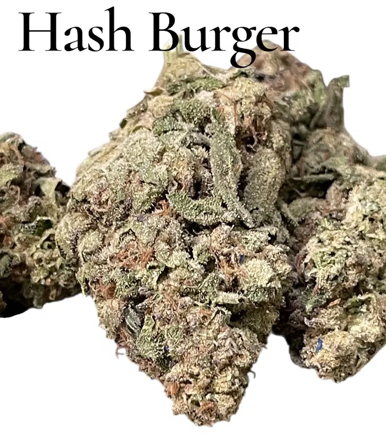 Hash Burger is a delicious heavy hitter developed by Skunkmasterflex, who developed the Burger line from an offshoot of Garlic Cookies aka GMO. For this delicious burger, the combination of Han Solo Hash Plant and Double Burger genetics create a deeply calming cultivar known for wowing MF-ing friends and newcomers alike with its flavors and effects–especially when consumed in hash form. We like to describe Hash Burger’s aroma as a mix of heavy unique notes, including sirloin, gas, mushrooms, and a bit of funk. A hard-to-find combination, the cultivar’s robust aroma highlights how gas and earth notes can come together to make for a standout choice for anyone seeking an unforgettable, pungent sensory experience. With dense buds and covered in frosty trichomes, Hash Burger offers a potent body high that’s perfect for unwinding after a long day. Known for its happy, sleepy effects, Hash Burger is a go-to cultivar for deep relaxation and stress relief.
