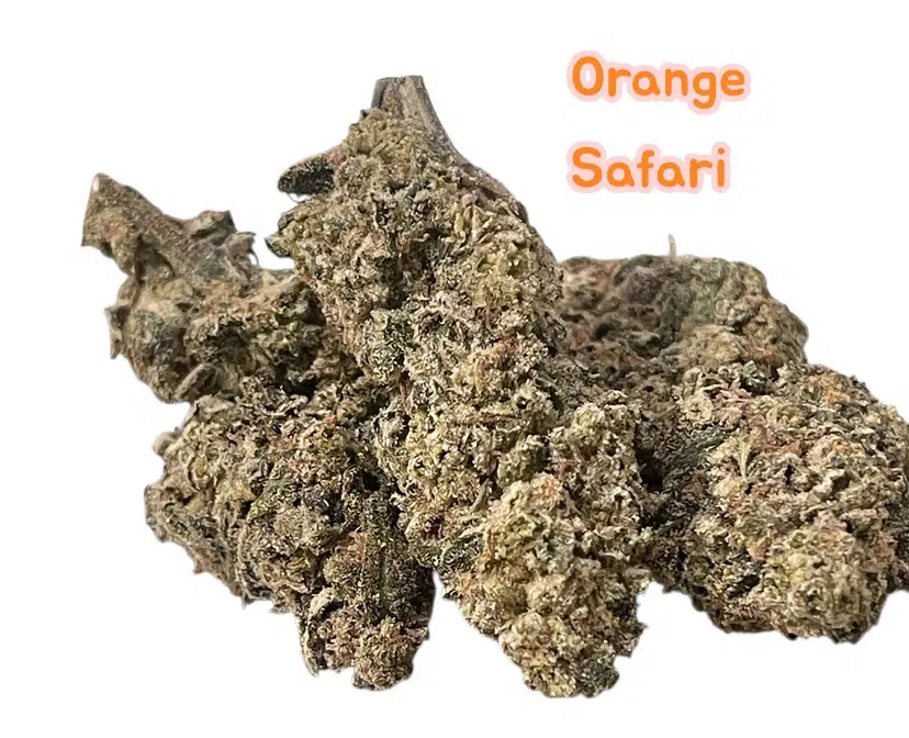 Orange Safari is a sativa- cannabis strain that features elevated levels of the rare terpenes terpinolene and ocimene, along with pinene and myrcene. This unique combination creates an herbal aroma with distinct pine and sweet citrus notes, complemented by grassy undertones. The buds showcase a chunky structure with vibrant spring-green coloring and distinctive pale orange hairs throughout. As a daytime strain, Orange Safari offers euphoric effects that sharpen focus, enhance creativity, and promote social enjoyment without anxiety.