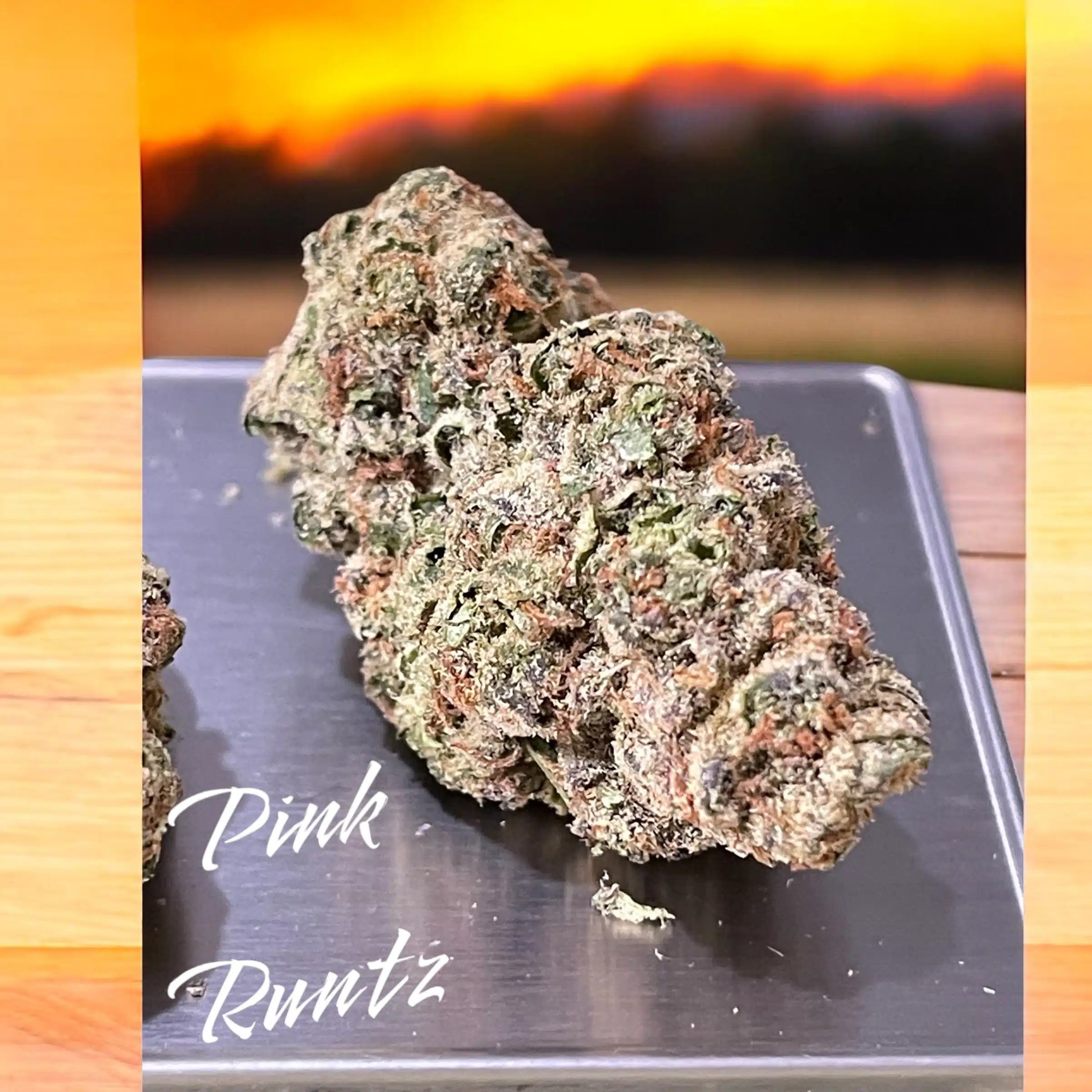 Pink Runtz is a rare evenly balanced hybrid strain (50% indica/50% sativa) created either as a phenotype of the infamous Runtz strain, a Zkittlez X Gelato cross, or as a cross of the delicious Rainbow Sherbet X Pink Panties strains. Described as a strain that will have you ‘talking to your forehead,’ this bud brings on the unfocused and giddy effects that will leave you feeling totally out of it and completely happy about it. The high starts with a rush of cerebral effects, filling you with a happy sense of high-flying euphoria that immediately pushes out any negative or racing thoughts, replacing them with heady unfocused bliss. As your mind settles into this buzzy state, a tingle will begin to spread throughout your physical form, leaving you totally relaxed and kicked back, pain-free from head to toe. In combination with its high 23-25% average THC level, these effects give Pink Runtz an edge in treating conditions such has depression, chronic stress or PTSD, mood swings, nausea or appetite loss and chronic fatigue. This bud has a sweet and fruity cherry berry flavor with a notable hint of sour candy. The aroma is very similar, although with a heavier sour overtone that intensifies as the nugs are burned away. Pink Runtz buds have dense spade-shaped minty green nugs with purple leaves, thin orange hairs and a thick frosty coating of tiny white crystal trichomes.