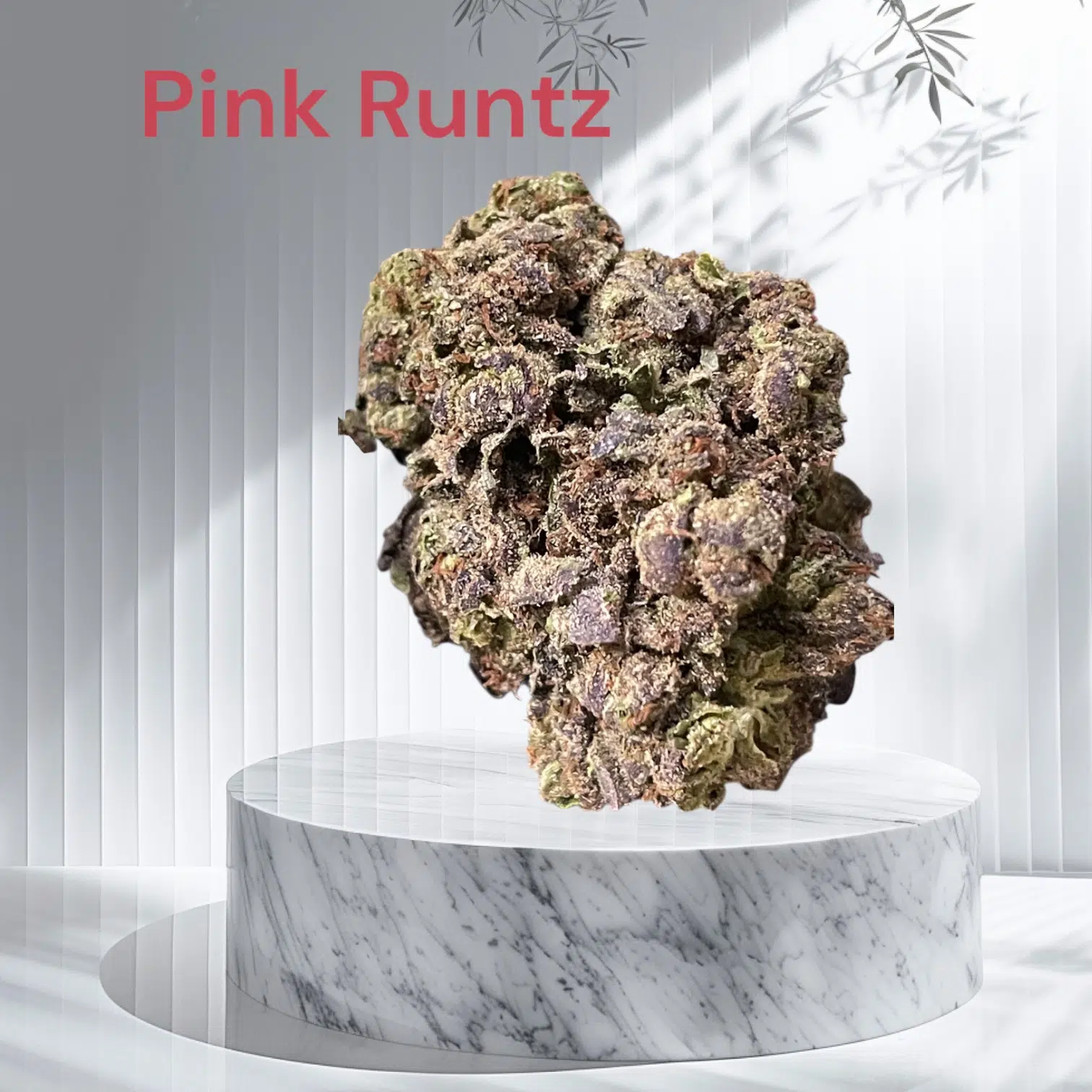 Pink Runtz is a rare evenly balanced hybrid strain (50% indica/50% sativa) created either as a phenotype of the infamous Runtz strain, a Zkittlez X Gelato cross, or as a cross of the delicious Rainbow Sherbet X Pink Panties strains. Described as a strain that will have you ‘talking to your forehead,’ this bud brings on the unfocused and giddy effects that will leave you feeling totally out of it and completely happy about it. The high starts with a rush of cerebral effects, filling you with a happy sense of high-flying euphoria that immediately pushes out any negative or racing thoughts, replacing them with heady unfocused bliss. As your mind settles into this buzzy state, a tingle will begin to spread throughout your physical form, leaving you totally relaxed and kicked back, pain-free from head to toe. In combination with its high 26% average THC level, these effects give Pink Runtz an edge in treating conditions such has depression, chronic stress or PTSD, mood swings, nausea or appetite loss and chronic fatigue. This bud has a sweet and fruity cherry berry flavor with a notable hint of sour candy. The aroma is very similar, although with a heavier sour overtone that intensifies as the nugs are burned away. Pink Runtz buds have dense spade-shaped minty green nugs with purple leaves, thin orange hairs and a thick frosty coating of tiny white crystal trichomes.