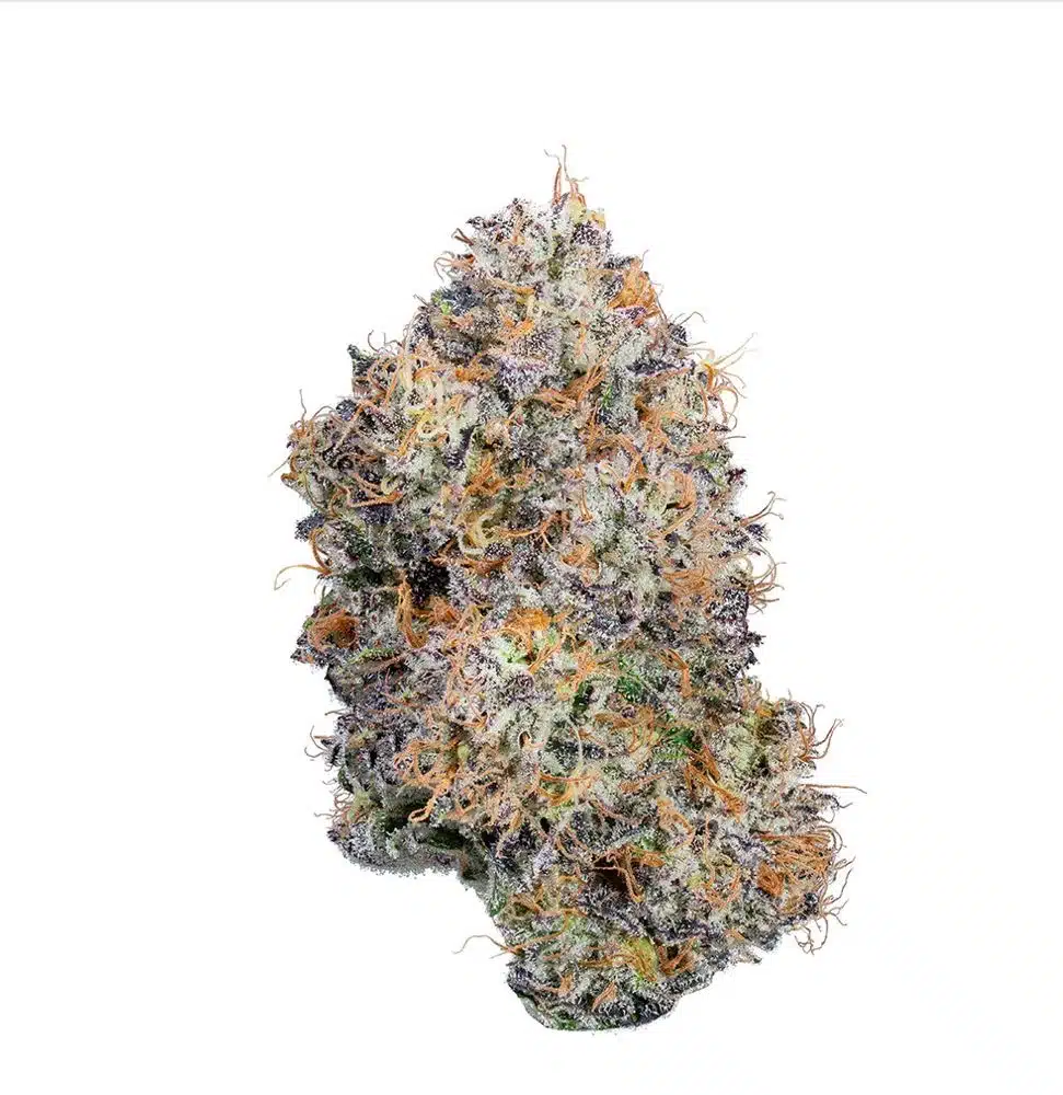 Flower so loud you can smell it through the freshness seal. Its sweet and juicy fruit aroma with minty high notes will make your mouth water the moment you open the jar. Deep greens and bushy pistils are all unified by a thick glaze of trichomes giving the flower a silvery frosted look. In fact, these dense and sticky little pine trees look like they got caught in a snow storm. The flavor profile is pleasantly sweet and sugary on the pull, with a prominent and biting tarry exhale. This strain will untie the knots in your mind and soothe the knots in your body just like a warm bath. A balanced hybrid with highly relaxing properties, great for sore muscles or just an end of the day smoke.