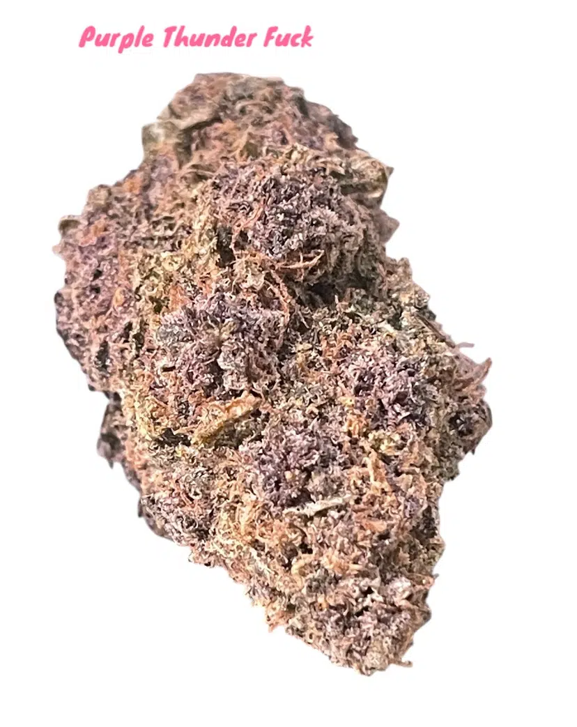 Purple Thunder Fuck is a legendary sativa-dominant strain originating in the Matanuska Valley area of Alaska. According to the legend, it was originally a Northern California sativa crossed with a Russian ruderalis, but sometime in the late 70s it was crossed with Afghani genetics to make it heartier. Purple Thunder Fuck usually presents large, beautifully frosted buds with incredibly strong odors of pine, lemon, menthol, and skunk. Known for possessing a relaxing yet intensely euphoric high, it is also described as having a “creeper” effect as well as pronounced appetite enhancement.