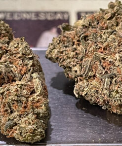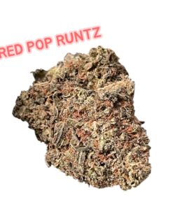 Red Pop Runtz is an evenly balanced hybrid strain (50% indica/50% sativa) created through crossing the potent Red Pop X Runtz strains. A candy-like strain with a soothing, stimulating high, Red Pop Runtz is the perfect dessert to top off any afternoon. The taste of Red Pop Runtz is insanely sweet and sugary, with a blend of fruity Skittles candies accented by a hint of fresh Granny Smith apple. The aroma is just the same, almost like you’re sitting next to a bowl of rainbow Skittles while outside just after the rain. The Red Pop Runtz high will hit you quickly, beginning with a rush of euphoria that infuses your mind with a burst of happy energy. As your mind lifts higher and higher, a creeping tingle will begin to sink into your body, eventually turning heavy and buzzy. This effect will be arousing at times, so get ready to jump into action! Combined with its insanely high 28-30% average THC level, these effects make Red Pop Runtz a great option for treating experienced patients with a variety of conditions including chronic stress or anxiety, chronic pain, depression, insomnia and cramps or muscle spasms. This bud has fluffy, popcorn-shaped forest green nugs with golden undertones, lots of thin orange hairs and chunky, amber-tinted white crystal trichomes.