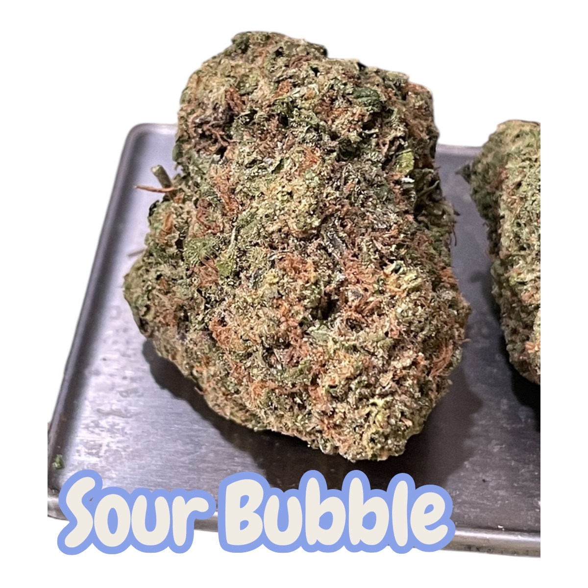 Sour Bubble is a 100% pure indica hybrid strain created by breeders at the infamous B.O.G. Seeds farms as a B.O.G. Bubble phenotype that was backcrossed three times. This insanely potent bud boasts an intense THC level ranging from 28% on average and was the winner in 2008 for Best Indica in High Times’ Cannabis Cup. Users describe the Sour Bubble high as one that is surprisingly well balanced. It’s relaxing and tingly with a slightly euphoric and uplifted feeling in the back of the head and neck. You’ll feel energetic and motivated at first before falling into a relaxing and warmed body melt. Due to these potent effects, Sour Bubble is said to be an ideal strain for treating patients suffering from conditions such as chronic pain, insomnia, muscle tension, and anxiety. Sour Bubble has a light and refreshing taste of sweet and sour fruit candies and an aroma of sweet yet somehow sour fruit. Sour Bubble buds have huge dense popcorn-shaped bright neon green nugs that have orange and purple undertones and long thin amber hairs. These nugs have patches of dark olive green leaves and are caked in a thick layer of crystal white trichomes and sweet sticky resin.