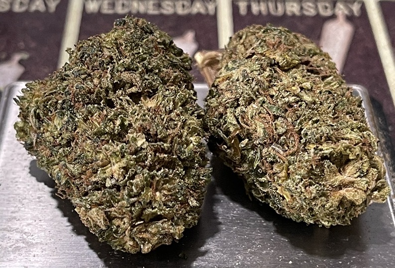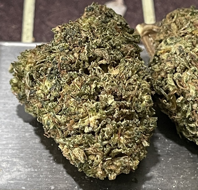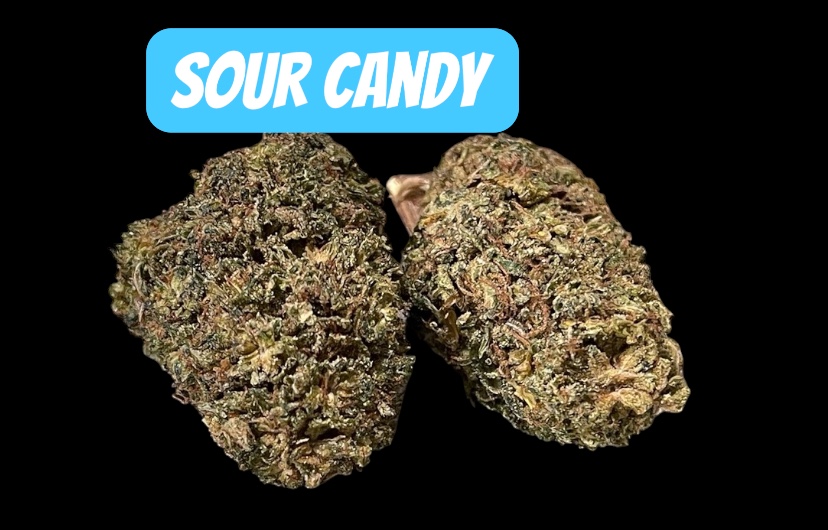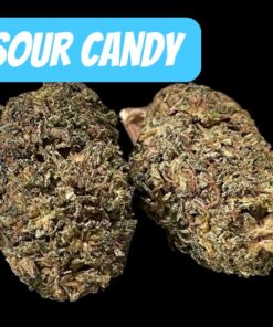 Sour Candy is a sativa dominant hybrid (80% sativa/20% indica) strain created as a cross of the insanely popular Sour Diesel X Bubble Gum strains. Sour Candy is best known for its delicious taste that is said to be like a classic Sour Warhead candy – intensely sour and fruity yet somehow sweet. The aroma is slightly different with an earthy sweet flavor that has fruity grapefruit undertones. The Sour Candy high is characterized by a happy uplifting effect that is perfect for day use. The high starts with a euphoric head rush that leaves you insanely happy with social tendencies that can leave you running your mouth like crazy. Because of these powerful uplifting cerebral effects, and its moderately high average THC level that falls between 14-16% on average Sour Candy is said to be the perfect strain for treating patients suffering from conditions such as migraines or headaches, glaucoma, mild to moderate cases of depression, and chronic pain. Sour Candy buds have small to medium-sized super airy and round grape-shaped bright forest green nugs with a spattering of long and thin rich amber hairs, and a thick frosty coating of chunky crystal white trichomes.