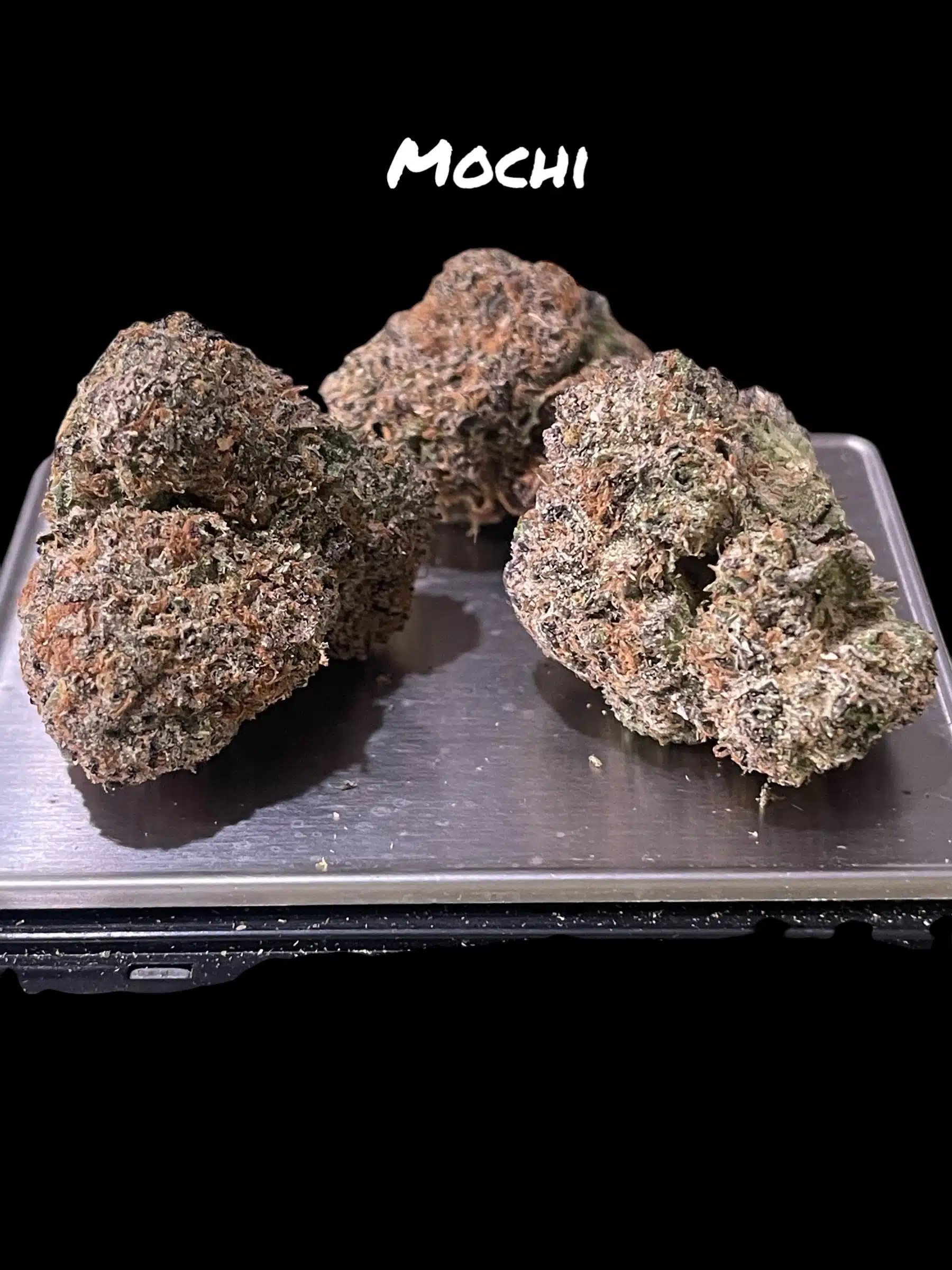 Mochi is an indica dominantstrain created through crossing the classic Super Boof X Mochi strains. If you’re on the hunt for a super tasty bud with long-lasting effects that will really help you settle down and get to sleep, look no further than this delicious lady. Like its name implies, Super Mochi packs a super-powered flavor that’s filled with creamy fruits, sugary vanilla and sour citrus galore. The aroma takes it up a level in the sweetness department, adding a notable overtone of sugary marshmallows to the whole equation. If you love the flavor, the Super Mochi high will be right up your alley, offering soothing, giddy effects that will put a big smile on your face and help relax both mind and body. The high will hit your brain first, filling you with a happy lift that pushes away any negative thinking whatsoever. Instead, you’ll find that you’re stuck in an uncontrollably giggly place that has you prone to falling into fits of laughter as your body slowly becomes locked down to the couch. In combination with its high 27-29% average THC level, these effects give Super Mochi an edge in treating chronic stress, insomnia, depression, chronic pain and arthritis. This bud has dense and oversized conical blue-green nugs with deep blue-green leaves, lots of thin orange hairs and chunky white crystal trichomes topped with sweet, sticky resin.