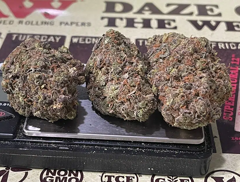 The flavor of the strain mirrors its scent, providing a berry-sweet smoke with grape and floral undertones. Many users describe it as smooth and slightly candy-like, making it a flavorful option for those who enjoy fruity strains. On exhale, a mild earthiness rounds out the taste, creating a well-balanced profile that keeps you coming back for another hit.